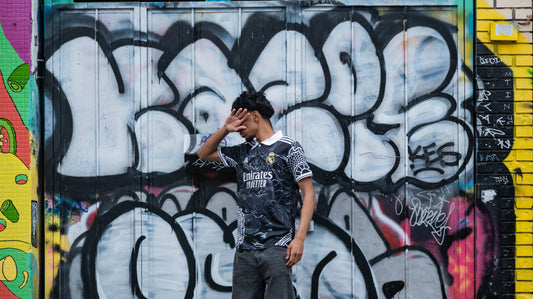 • Real Madrid Y-3 jersey with roses on pedestal display