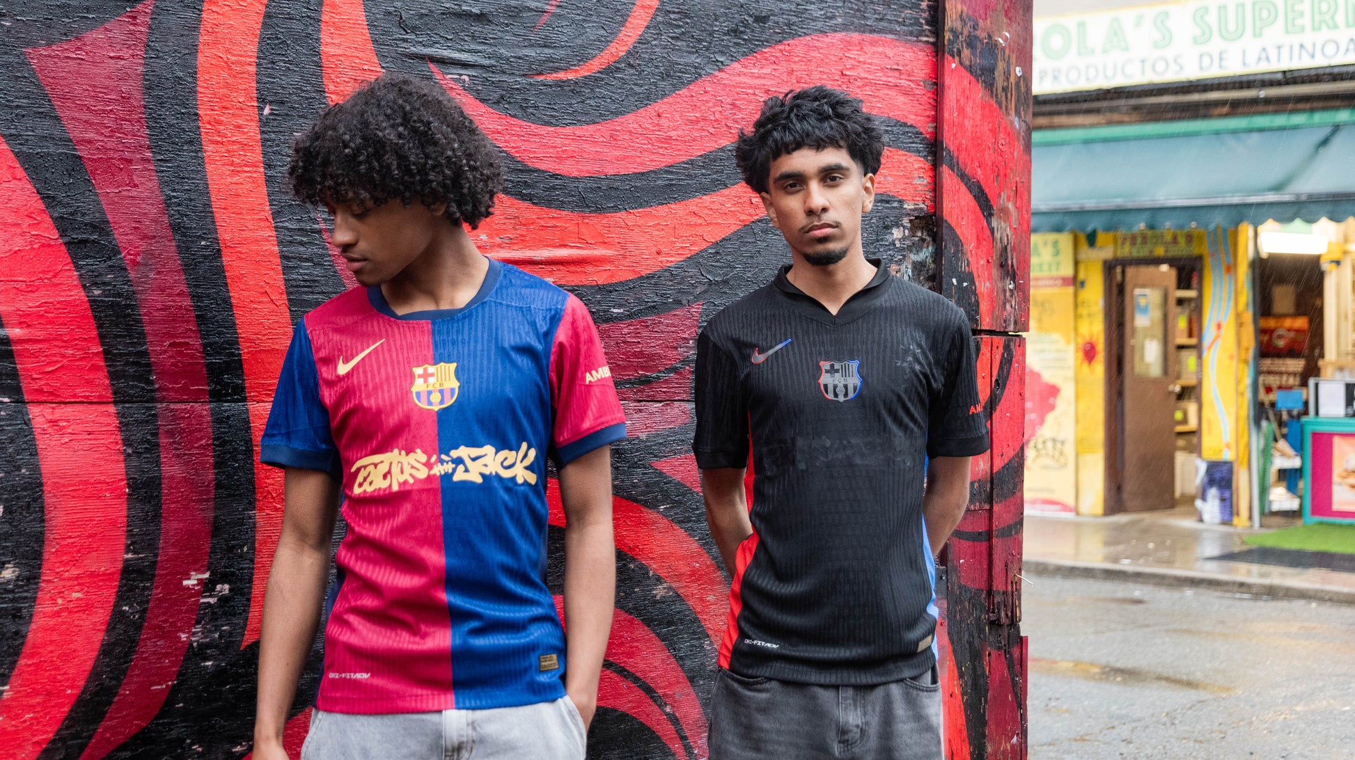 Exclusive Travis Scott x Barcelona home jersey featuring bold red and blue stripes with premium gold accents. This limited edition design merges streetwear culture with football heritage, showcasing custom graffiti-inspired artwork that captures Travis Scott's signature aesthetic. Premium embroidery and authentic Barcelona styling make this a must-have collector's piece for fans of both football and street fashion.